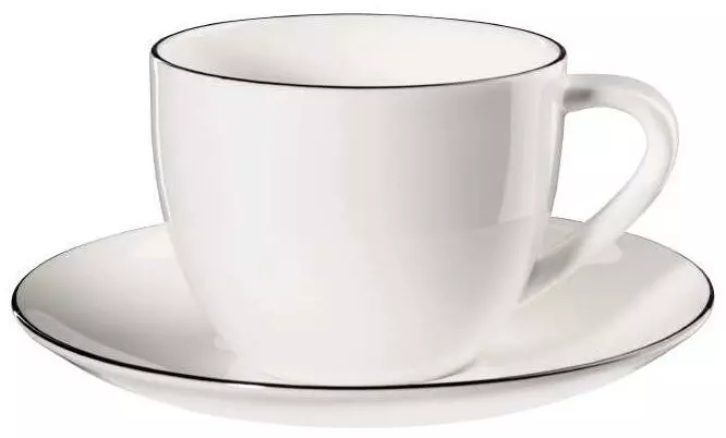 ASA Cappuccinotasse mit Untertasse à Table Ligne Noire. Geräumige Tasse für cremigen Cappuccino (250 ml) mit passender Untertasse und schwarzer Konturlinie.