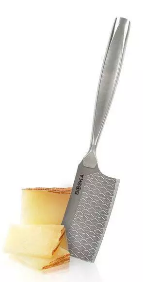Boska Hartkäsebeil Monaco+, Nr.6. Das Beil ist zum Schneiden oder Hacken für festen Käse wie Manchego oder Parmesan. Mit Antihaftbeschichtung, damit sich der Käse besser löst.