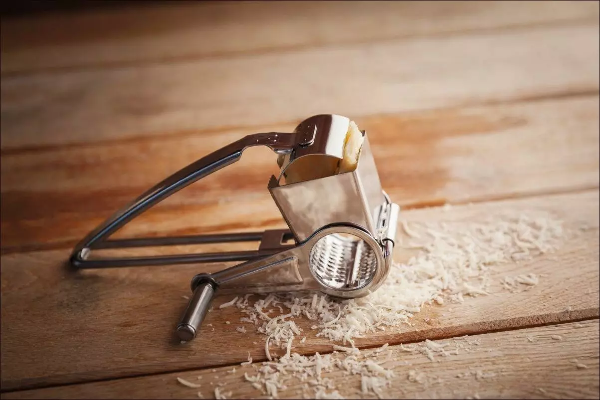 Käsereibe Romano. Die Käsereibe für Links- und Rechtshänder zum Reiben von halbhartem bis hartem Käse.