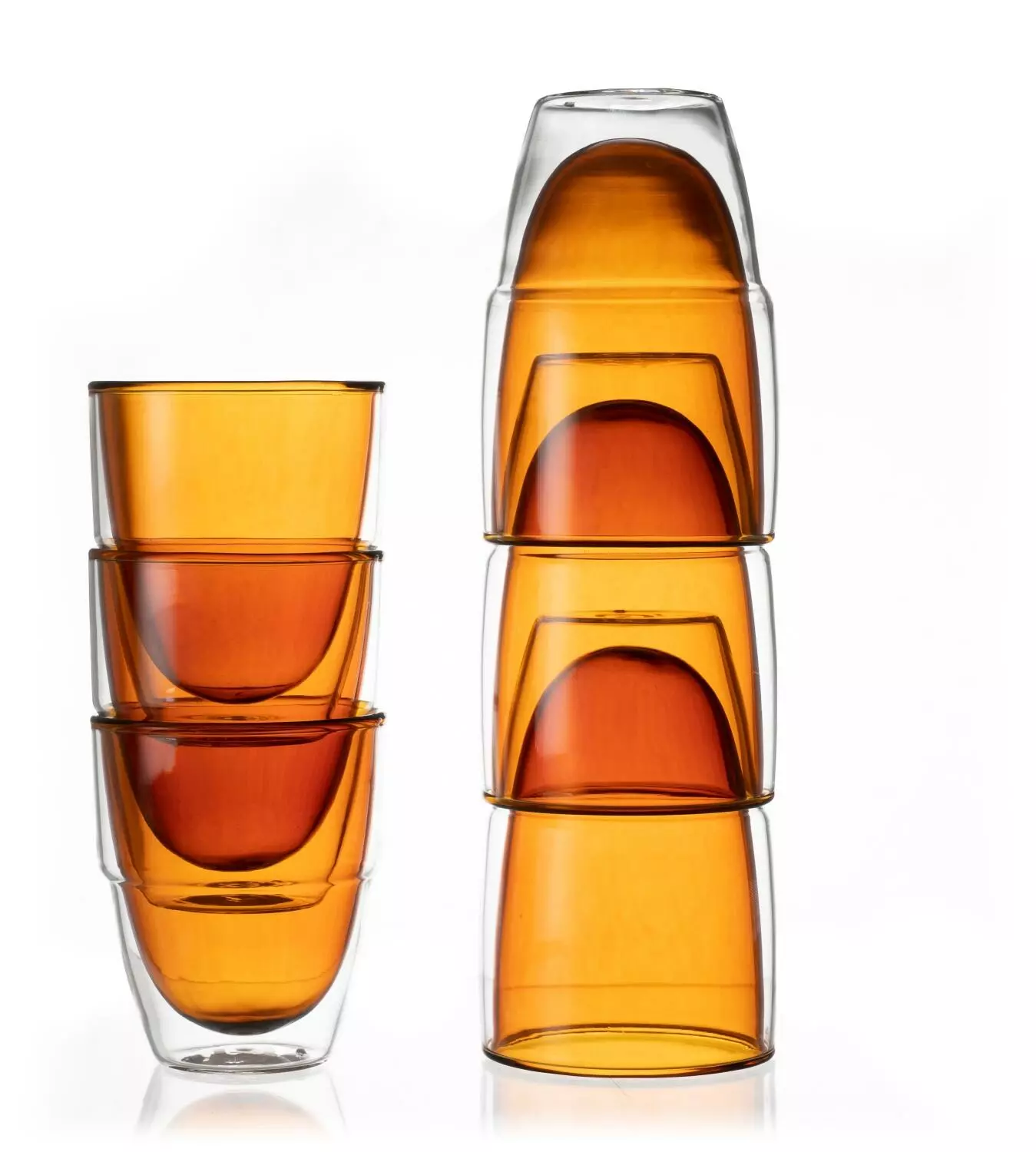 Carl Henkel Thermoglas STACK, amber. Doppelwandiges und stapelbares Glas für den perfekten Trinkgenuss von Tee oder anderen heißen oder kalten Getränken.