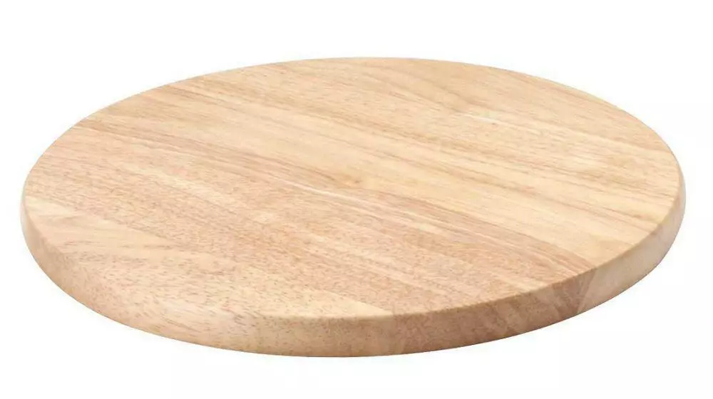 Schneidebrett rund aus Gummibaumholz. Das Brett ist in zwei verschiedenden Größen erhältlich.