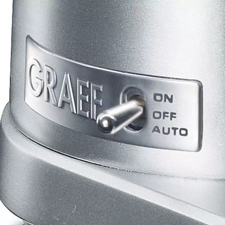 frei. Diese können sich dann später im heißen Wasser lösen. Da der gemahlene Kaffee sehr schnell an Qualität verliert, sollte der Kaffee erst unmittelbar vor der Zubereitung gemahlen werden. Es gibt Kaffeemühlen mit verschiedenen Mahlwerken. Die Kaffeemühle CM 80 von GRAEF besitzt ein Kegelmahlwerk aus Edelstahl. Das Kegelmahlwerk hat den Vorteil, durch geringe Drehzahlen keine oder wenig Hitze zu erzeugen, dadurch ist das Mahlen aromaschonender. Der auf 40 Stufen einstellbare Mahlgrad bildet die Grundlage für den individuellen Kaffeegenuss. Durch das herausnehmbare, obere Mahlwerk erfolgt eine weitere Feinjustierung. Über den Ein- und Ausschalter Kaffeemühle lässt sich die Autofunktion für Siebträger anwählen. So kann der Kaffee immer frisch