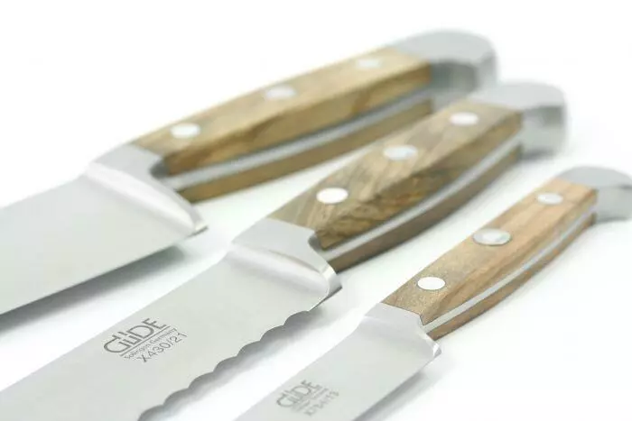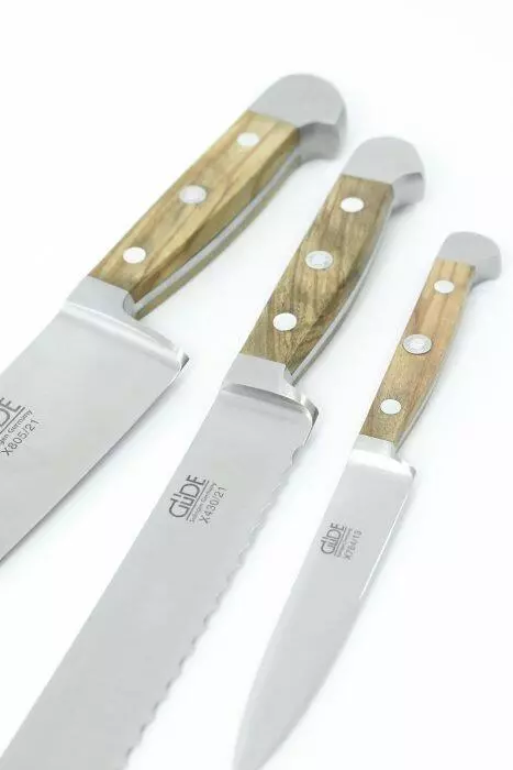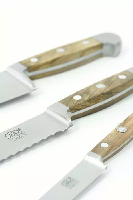 Güde Alpha Olive bestehen aus bis zu 500 Jahre altem, ausgesuchtem Olivenholz, welches sehr hart, witterungsfest, stark gemasert und dadurch besonders elegant ist. Rostfrei, eisgehärtet, handgeschärft – nicht spülmaschinenfest. Das sind die Güde Messer aus der Serie Alpha Olive.