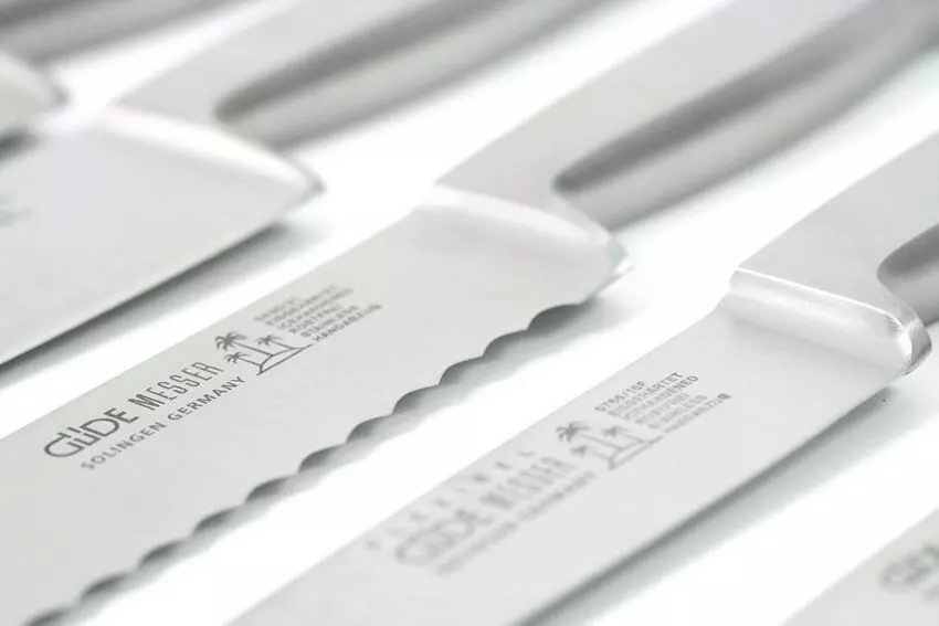 - Güde Messer niemals ungereinigt liegen lassen – besonders nach dem Umgang mit säurehaltigen Nahrungsmitteln.