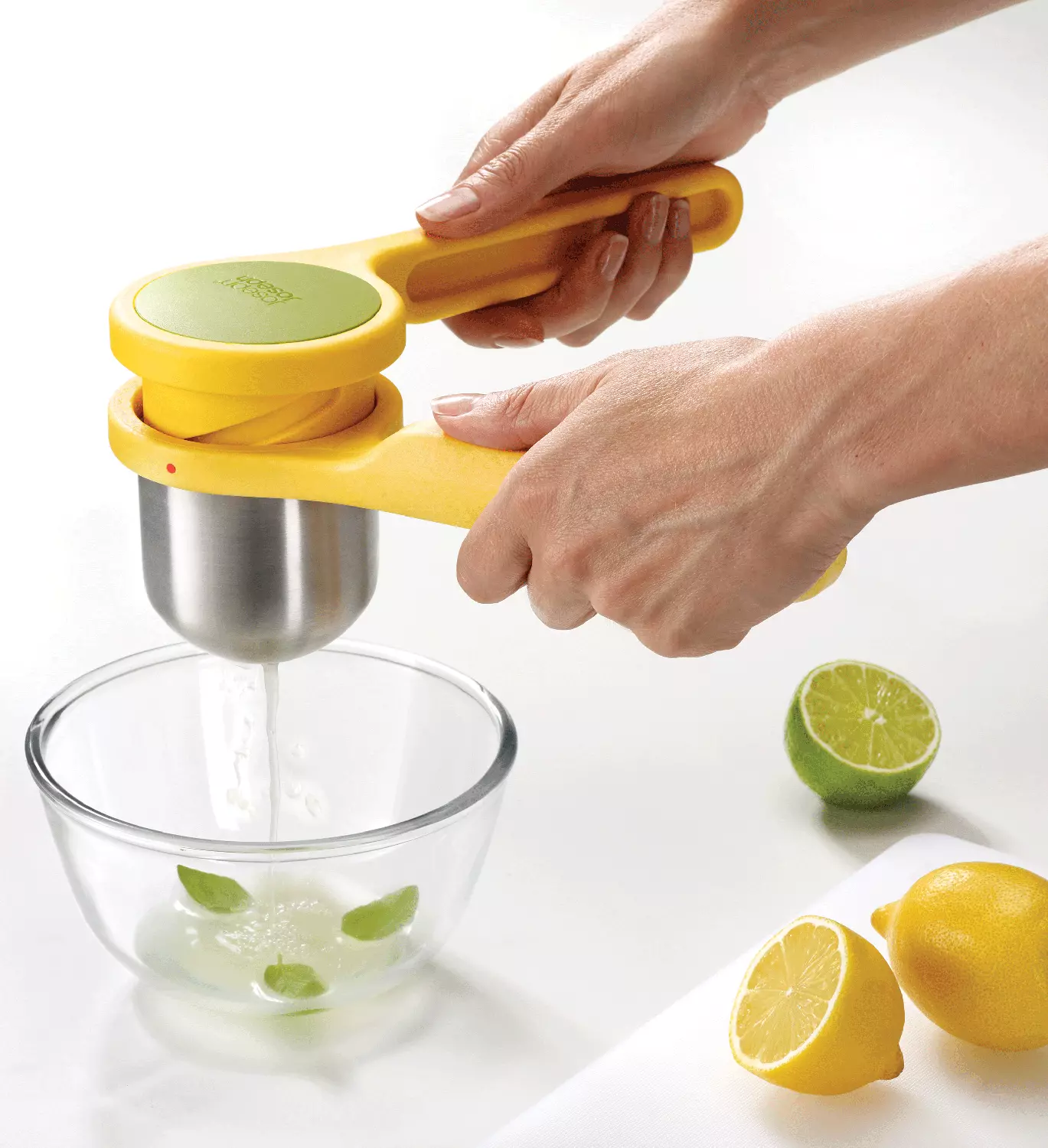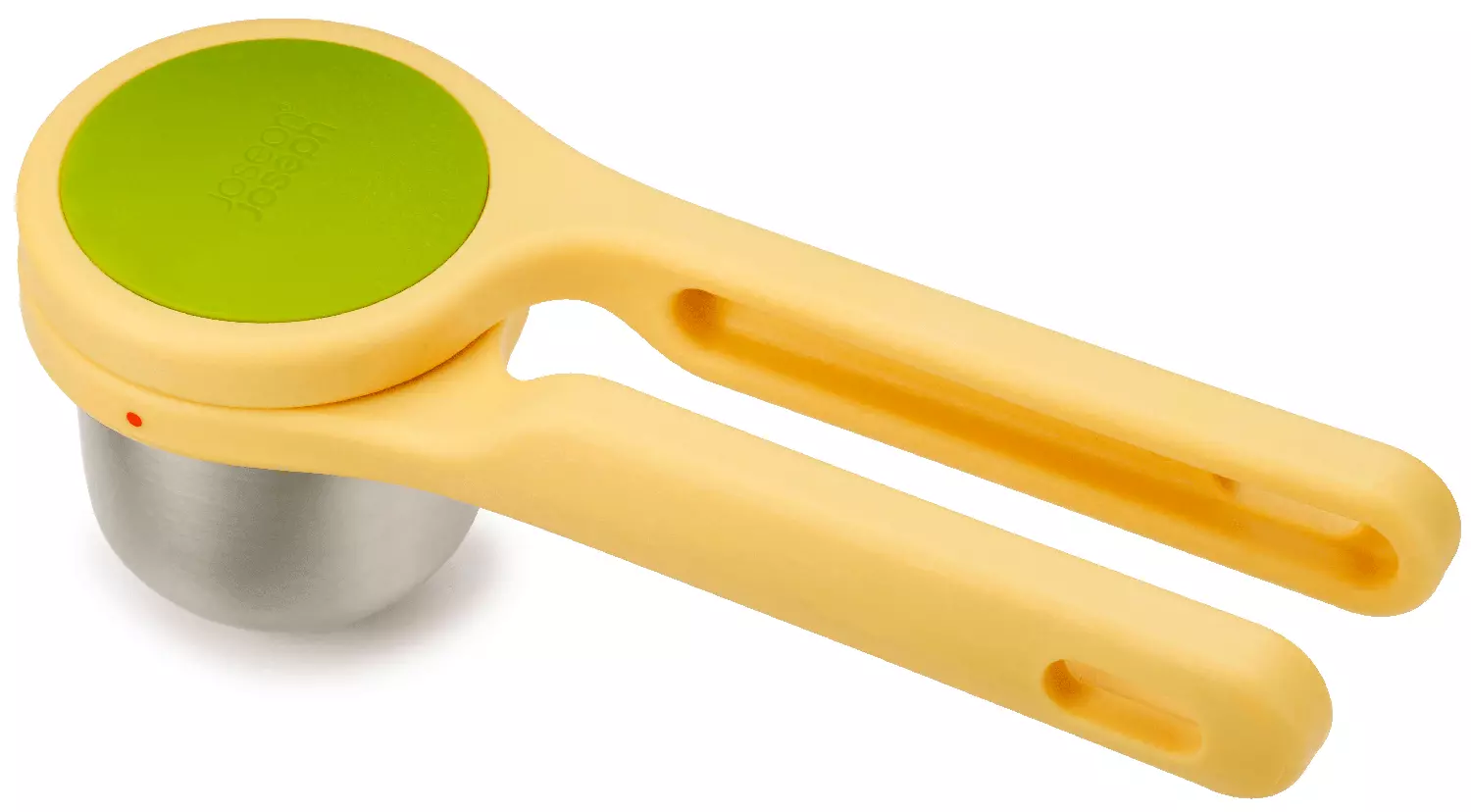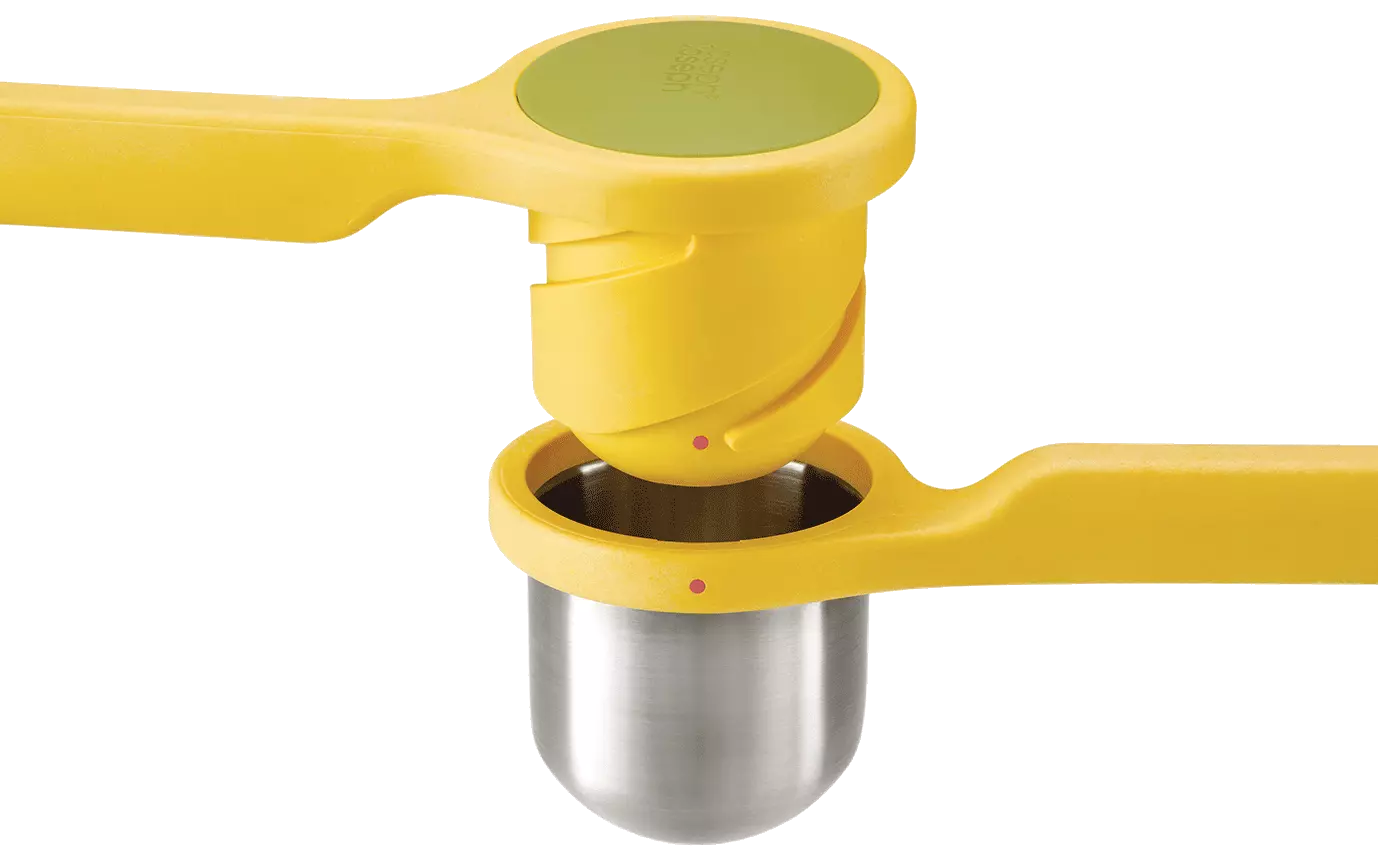 Die ergonomisch geformten Pressen der Joseph Joseph Helix-Serie sind dank der horizontalen Stellung bequem zu bedienen. Der einzigartige Drehmechanismus vervielfacht die beim Pressen angewandte Kraft – sodass das Ausdrücken noch einfacher wird. Die Pressen bestehen aus zwei Komponenten aus rostfreiem Edelstahl und Nylon. Diese Pressteile können nach der Benutzung in der Spülmaschine gereinigt werden.
