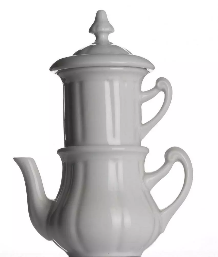 Karlsbader Kaffeemaschine von Porzellanfabrik Walküre. Ohne Filtertüte und Metallsieb. Das Aroma kann sich vollkommen entfalten.
