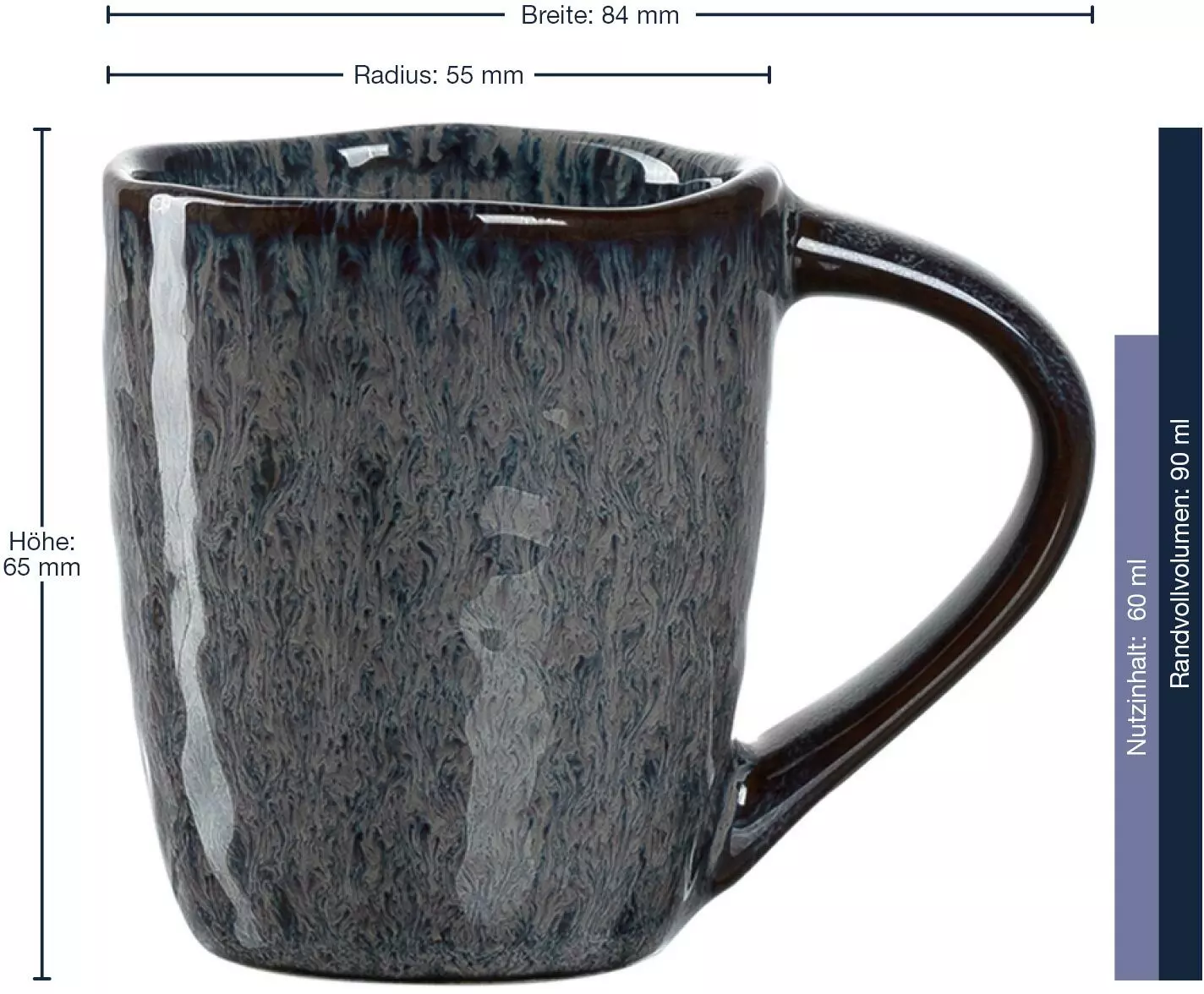 Erleben Sie italienisches Ambiente bei sich zu Hause und lassen Sie sich begeistern von der Tasse aus der Serie MATERA. Mit ihrer wunderschönen Form passt diese Tasse perfekt zum zugleich verspielten und sinnlichen Landhausstil. Sie ist in einem ansprechenden anthrazitfarbenen Farbton gehalten. Mix und Match, die Produkte und Farben sind miteinander kombinierbar. Durch die handaufgetragene Effektglasur ergeben sich einzigartige Farbverläufe und individuelle Muster. Dennoch passen alle Stücke harmonisch zusammen. Das Geschirr ist schnittfest, mikrowellengeeignet und spülmaschinenfest und zudem noch ideal geeignet für schicke Dekorationen. Da sollten Sie nicht länger überlegen! Kommen auch Sie in den Genuss dieser wunderschönen anthrazitfarbenen Espressotasse!