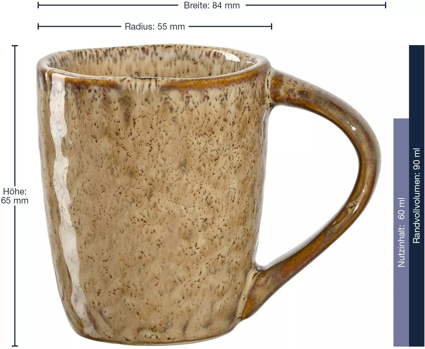 Wunderschöne Momente des Genusses erleben: Lassen Sie sich begeistern von der Tasse aus der Serie MATERA. Diese Tasse ist ein absolutes Must-Have und überzeugt mit ihrem ansprechenden beigefarbenen Farbton. Mix und Match, die Produkte und Farben sind miteinander kombinierbar. Durch die handaufgetragene Effektglasur ergeben sich einzigartige Farbverläufe und individuelle Muster. Dennoch passen alle Stücke harmonisch zusammen. Das Geschirr ist schnittfest, mikrowellengeeignet und spülmaschinenfest und zudem noch ideal geeignet für schicke Dekorationen. MATERA ist ideal für den gedeckten Tisch – ob morgens, mittags oder abends, ob für Heißgetränke oder die Zubereitung und das Genießen von Speisen. Warum noch lange warten? Nicht lange warten, einfach bestellen! Profitieren Sie von dieser praktischen beigefarbenen Espressotasse.