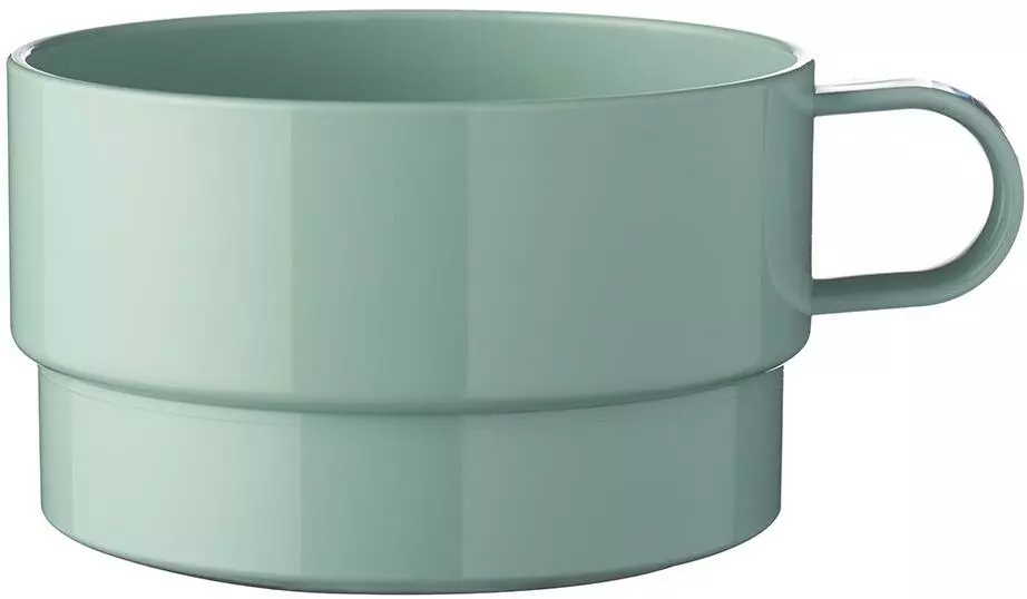 Cappuccinotasse in Retro Green mit einem Inhalt von 300 ml aus der Basic (Camping)Geschirr Serie. Dieses Campingservice besteht schon länger als 30 Jahre und ist inzwischen ein echter Klassiker geworden.