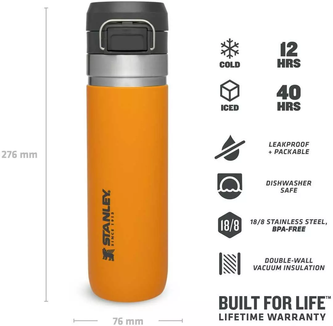 ROBUST UND SICHER: Die Stanley Trinkflasche ist “built to last”: hergestellt aus hochwertigem, rostfreien 18/8 Edelstahl, der robust und 100% lebensmittelecht ist. Die Materialien sind frei von BPA, so dass der Inhalt sicher konsumiert werden kann.