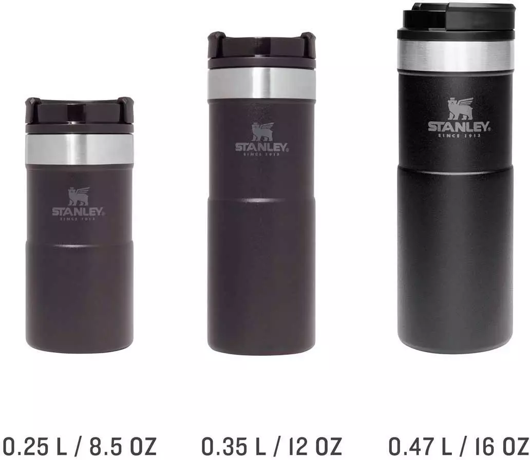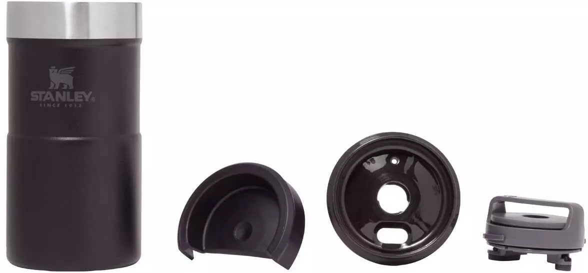 Mit dem Stanley NEVERLEAK TRAVEL MUG werden durch seine doppelwandige Edelstahl-Vakuumisolierung heiße Getränke bis zu 3 Stunden heiß und kalte Getränke bis zu 4 Stunden kalt gehalten. Der Trinkbecher aus rostfreiem 18/8-Edelstahl besitzt ein Fassungsvermögen von 250 ml und verfügt über einen einzigartigen 3-Positionen Deckel, der sich zum einfachen Trinken aufdrehen lässt und beim Schließen fest verriegelt. Der NEVERLEAK TRAVEL MUG ist komplett spülmaschinenfest, auslaufsicher und passt in gängige PKW-Getränkehalterungen. BPA-frei.