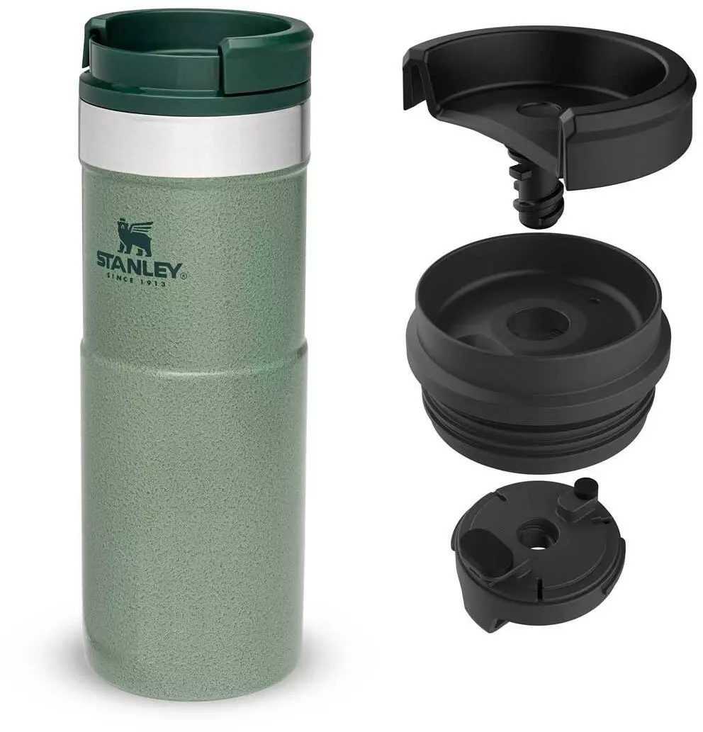 Mit dem Stanley NEVERLEAK TRAVEL MUG werden durch seine doppelwandige Edelstahl-Vakuumisolierung heiße Getränke bis zu 7 Stunden heiß und kalte Getränke bis zu 10 Stunden kalt gehalten. Der Trinkbecher aus rostfreiem 18/8-Edelstahl besitzt ein Fassungsvermögen von 473 ml und verfügt über einen einzigartigen 3-Positionen Deckel, der sich zum einfachen Trinken aufdrehen lässt und beim Schließen fest verriegelt. Der NEVERLEAK TRAVEL MUG ist komplett spülmaschinenfest, auslaufsicher und passt in gängige PKW-Getränkehalterungen. BPA-frei.