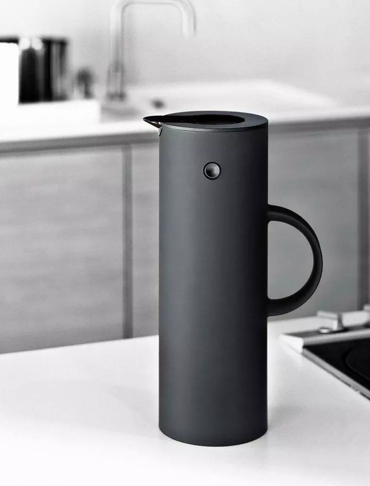 Stelton Isolierkanne EM77 1 l in soft black. Höchste Funktionalität und innovatives Design in einem Produkt – der charakteristische Isolierkannenklassiker.