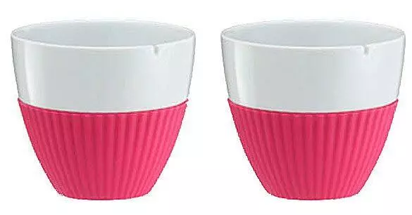 Viva Scandinavia Teebecher Anytime in pink, 2er Set. Porzellan-Teebecher mit Silikonmanschette und Einkerbung am Rand. Speziell zum Aufgießen von Teebeuteln.