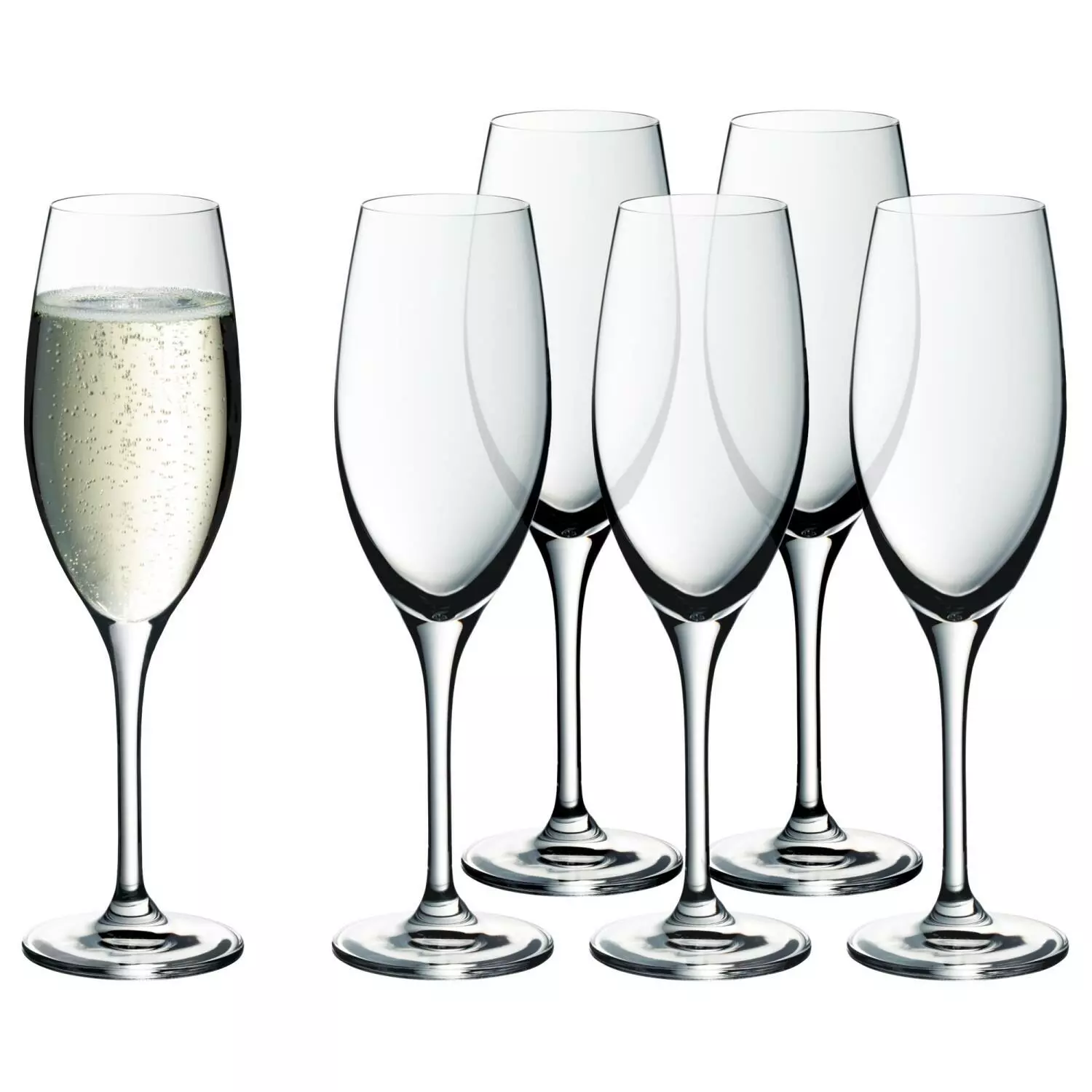 Ob es sich um Champagner, Crémant, Winzersekt oder Prosecco handelt – eines haben alle Schaumweine gemein: Am besten lassen sie sich aus einem schmalen Champagnerglas genießen. Das wirkt nicht nur besonders stilvoll, auch das Prickeln des Schaumweines hält länger, denn in dem schlanken Glas verflüchtigt sich das Kohlendioxid nicht so schnell. Aber auch aus rein optischen Gründen sind hohe Gläser die beste Wahl: Schließlich glitzern die kleinen Perlen in Champagnergläsern besonders schön.